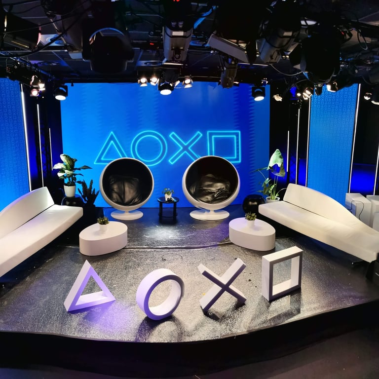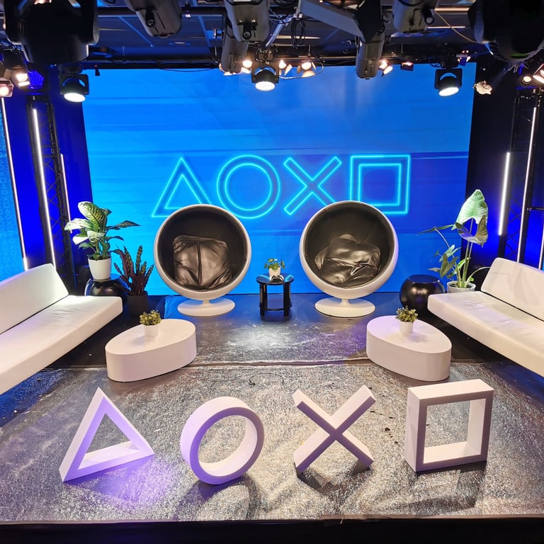 Durante la velada PlayStation LeStream organizada en Webedia, diseñamos y acondicionamos el set y los espacios de recepción. Nuestra intervención consistió en crear una escenografía inmersiva, integrando elementos visuales emblemáticos del universo PlayStation, con el fin de ofrecer una experiencia coherente y envolvente para los invitados y los espectadores en línea.